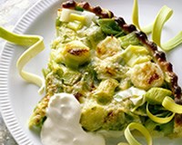 Sortez les poireaux du cuit-vapeur et étalez-les dans le fond de tarte. Recouvrez-les du mélange crème/oeufs.
